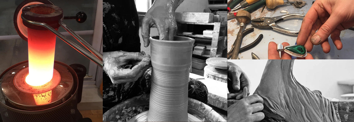 Pratique artistique interdisciplinaire en céramique, sculpture, joaillerie, taille lapidaire, fonderie d'art et photographie.